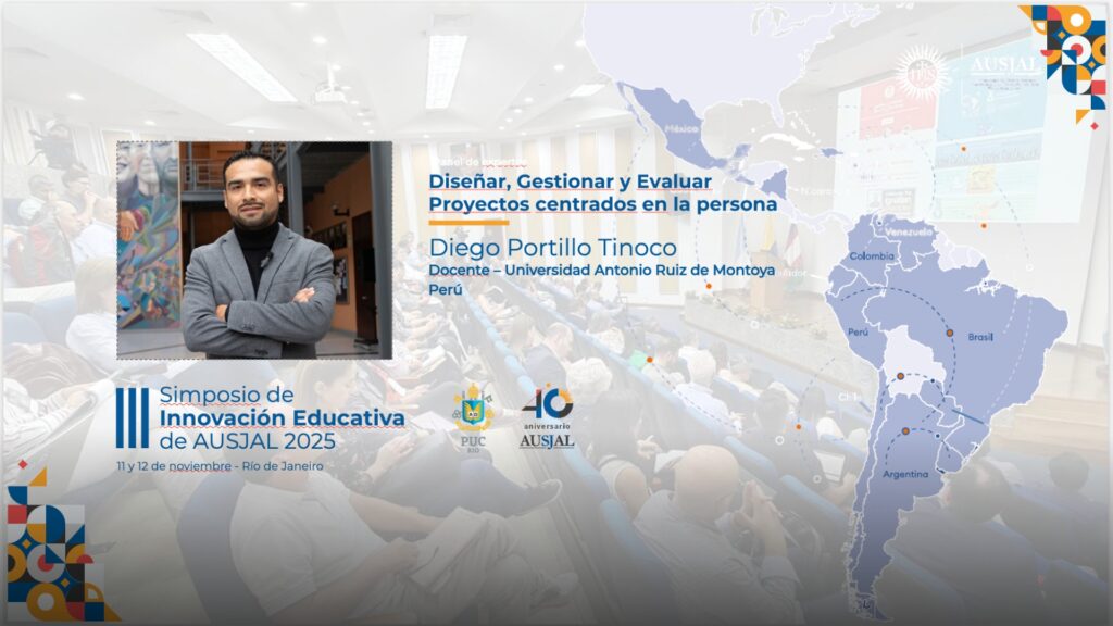 De manera virtual, el Mg. Diego Portillo participó en la mesa de Tutoría, Mentoría y Desarrollo Personal, donde presentó la ponencia “Diseñar, gestionar y evaluar proyectos centrados en la persona». En su exposición abordó la relevancia de desarrollar iniciativas educativas con enfoque humanista, fundamentadas en la pedagogía ignaciana y el enfoque de derechos humanos.