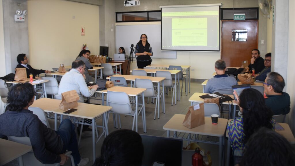 Con el propósito de continuar fortaleciendo la comunidad docente dedicada a la investigación, se llevó a cabo la segunda reunión de docentes con perfil investigador de la Universidad Antonio Ruiz de Montoya. El encuentro fue liderado por la Vicerrectora (e) de Investigación y jefa de la oficina de Desarrollo de Investigación, Sandra Pinasco, el cual tuvo como objetivo presentar los avances normativos y procedimentales que fortalecen la gestión de la investigación en la universidad.